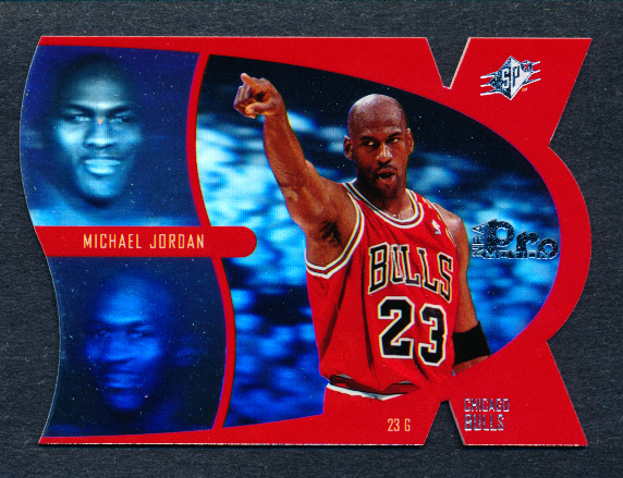 So far, I have a few cards in five out of the six SPx sets listed above. The first set I started building was the '97 SPx Pro Motion basketball set. In my humble opinion, it's highlighted by one of the best looking Michael Jordan cards in the hobby (