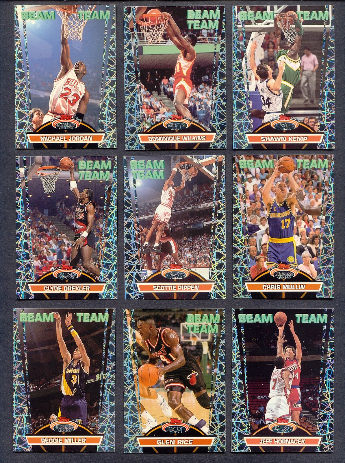 '98 Pro Motion cards, these sets are all very similar featuring cool die cut designs and crystal clear holograms. Because of those design attributes, I've always liked them.